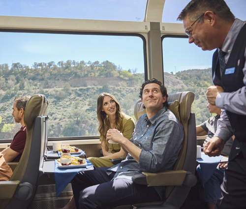Vi rejser på SilverLeaf-klassen, som har store vinduer med god udsigt. På denne klasse serveres maden i sæderne. Der serveres gratis drikkevarer på hele turen.